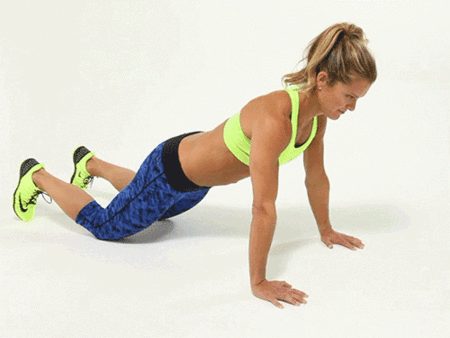 5. Mountain climbers: Start in a plank position with your hands shoulder-width apart. Bring one knee towards your chest, then quickly switch with the other knee. Continue alternating knees as fast as you can, mimicking a running motion.